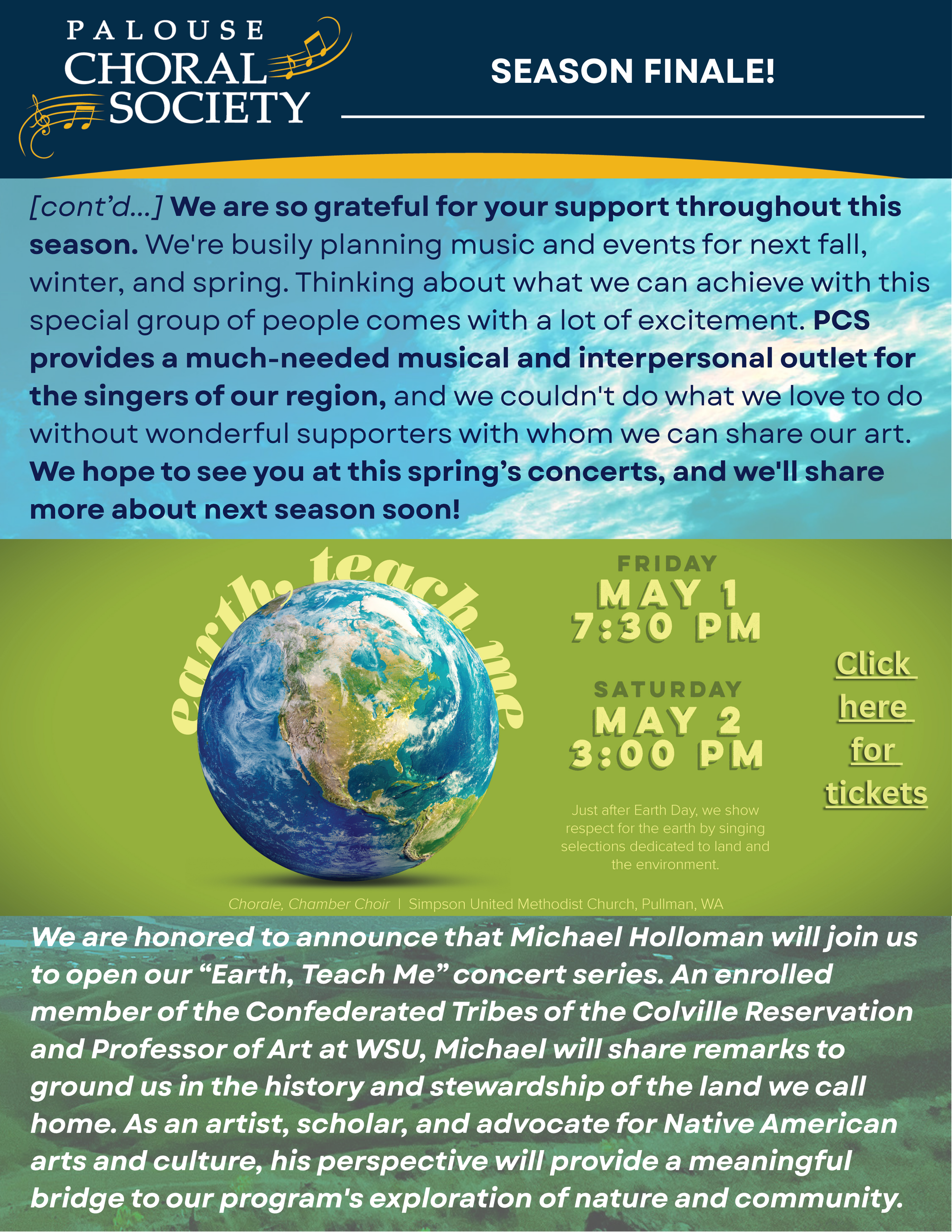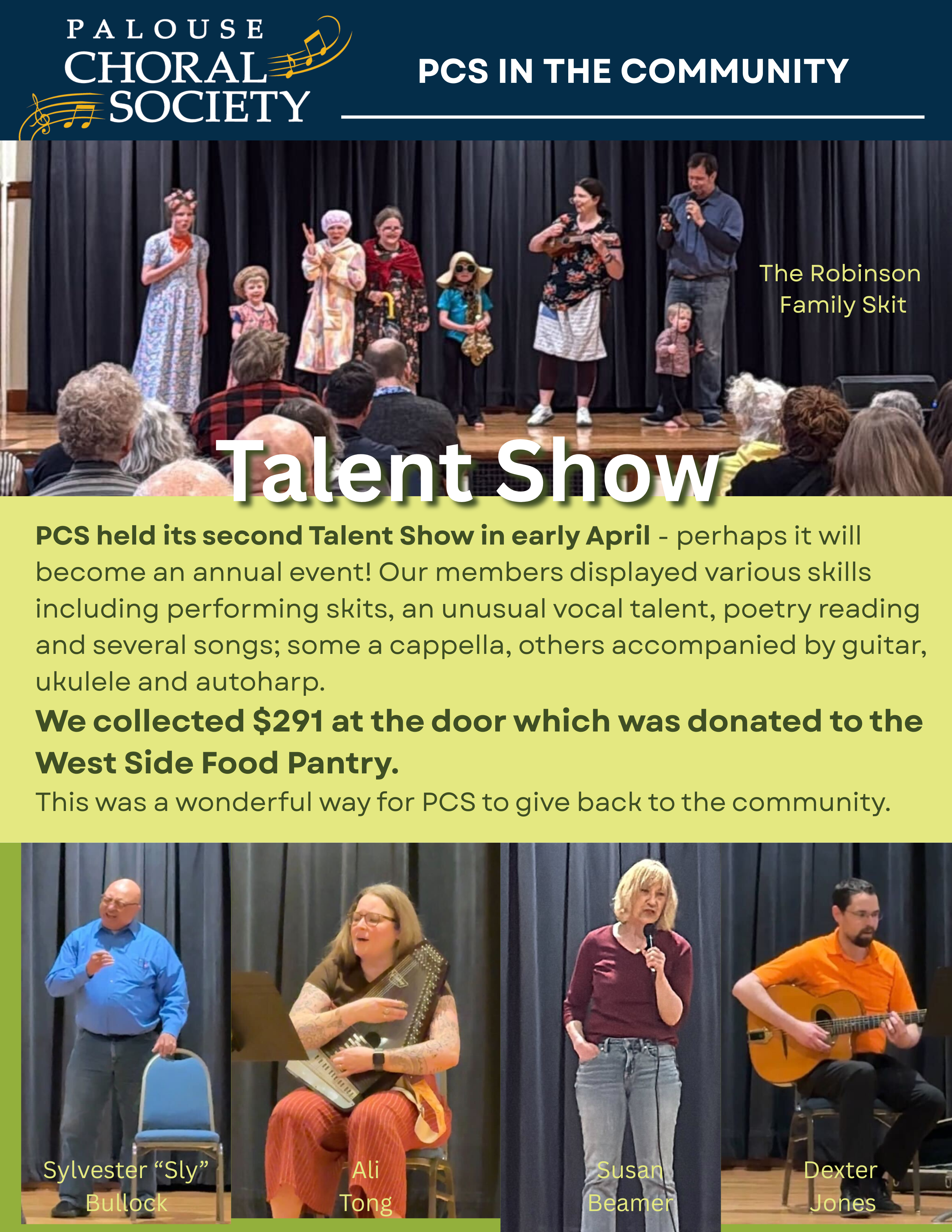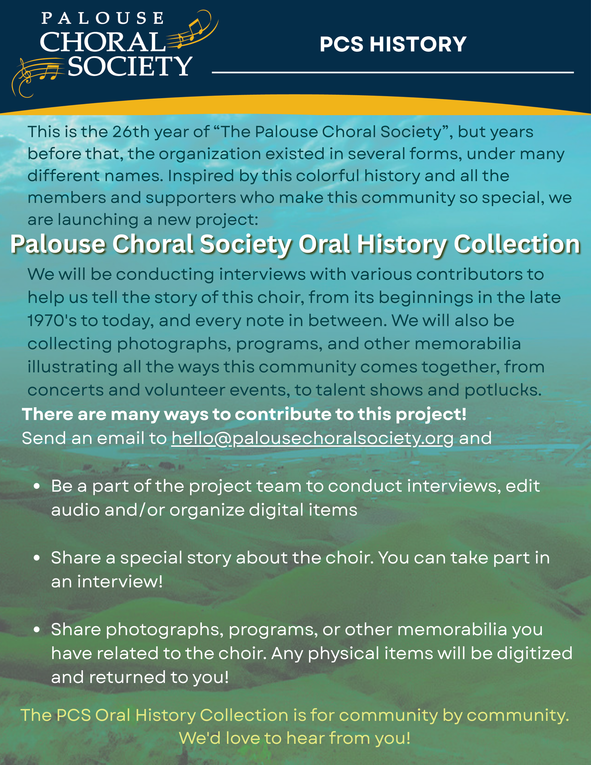 Purchase Tickets HereSing With UsEmail to Contribute to PCS's Oral History ProjectGive Early Here Share